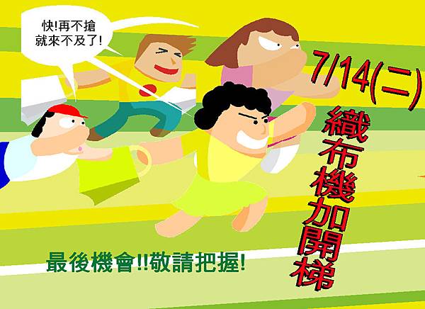 7/7織布機已額滿,7/14加開梯招生中~~